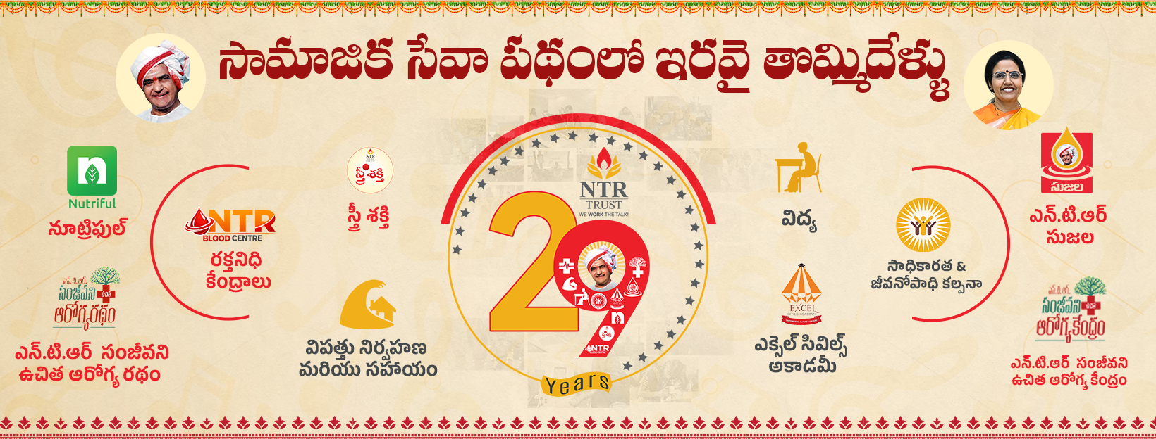 Established in 1997, NTR Memorial Trust has been at the forefront of bringing socio-economic change in Andhra Pradesh and Telangana. Our work is guided by the cardinal principle that as guardians of private funds, the same must be used prudently for the larger public causes especially for the under privileged and weaker sections of the society. We are inspired by NTR’s deeply held belief that sharing and caring are the ultimate goals of human life.