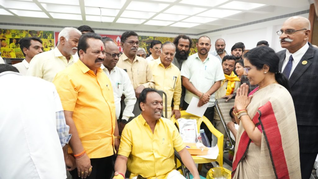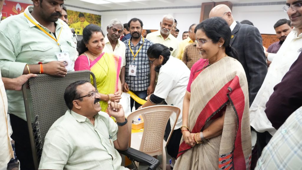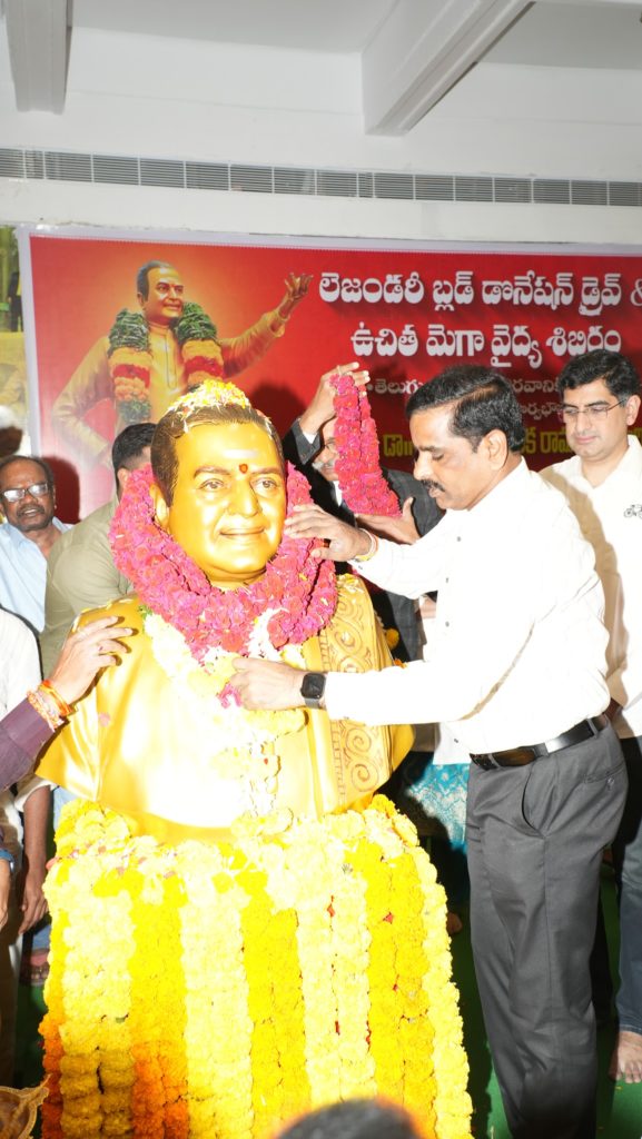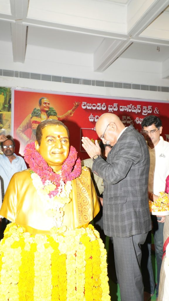 అనంతరం ఎన్టీఆర్ మెమోరియల్ ట్రస్ట్ ఆధ్వర్యంలో నిర్వహించిన మెగా బ్లడ్ డొనేషన్ డ్రైవ్ కార్యక్రమాన్ని జ్యోతి ప్రజ్వలన చేసి ప్రారంభించారు. ఈ సందర్భంగా రక్తదానం చేసిన దాతలను అభినందించి వారికి సర్టిఫికెట్లు అందజేశారు. అలాగే, ఏర్పాటు చేసిన ఉచిత మెగా వైద్య శిబిరంలో రోగులకు ఉచితంగా మందులు పంపిణీ చేశారు.