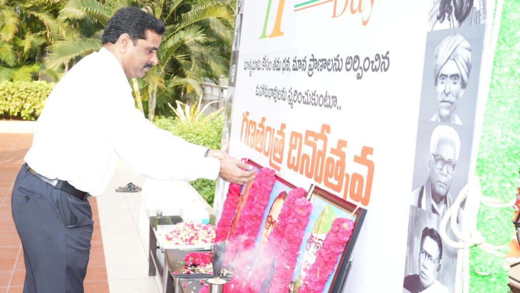 The National Flag was ceremoniously unfurled by Shri K. Rajendra Kumar, IPS (Retd.), CEO, NTR Memorial Trust, in the presence of Shri A. Gopi, Chief Operating Officer, along with the staff members of the Trust.